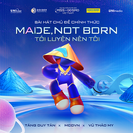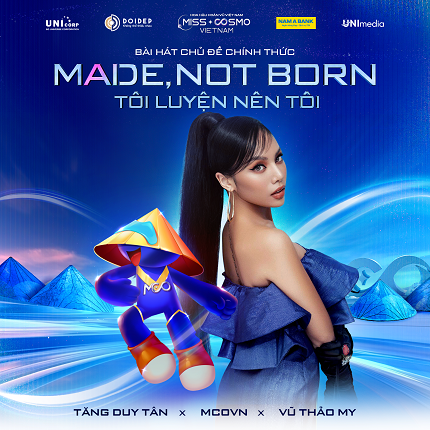 Không chỉ sở hữu giai điệu bắt tai hợp xu hướng, ca khúc chủ đề mang tên “MADE, NOT BORN – TÔI LUYỆN NÊN TÔI” còn lan tỏa thông điệp ý nghĩa về khát khao tôi luyện nên phiên bản tốt nhất của chính mình, tự tin chinh phục mục tiêu và đam mê. Sản phẩm cũng đánh dấu sự kết hợp đầy thú vị giữa Ban tổ chức Hoa hậu Hoàn vũ Việt Nam – Miss Cosmo Vietnam 2023 cùng với Ca sĩ Vũ Thảo My và Nhạc sĩ Tăng Duy Tân, Drum 7, BAP (Big Arts Producers).