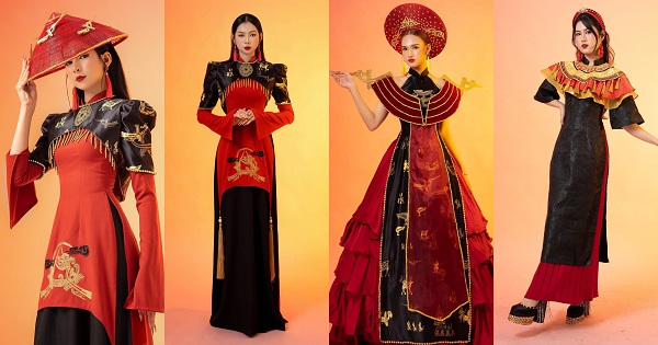 Bộ sưu tập áo dài “Sắc Việt” của sinh viên Tạ Thị Ánh Ngọc cũng là một trong những BST được Nhà thiết kế Sĩ Hoàng đánh giá cao khi lấy cảm hứng từ họa tiết trống đồng ứng dụng vào thiết kế áo dài hiện đại. Các hoa văn này vừa có tính nghệ thuật, vừa mang linh hồn của dân tộc nhưng không hề lỗi thời.